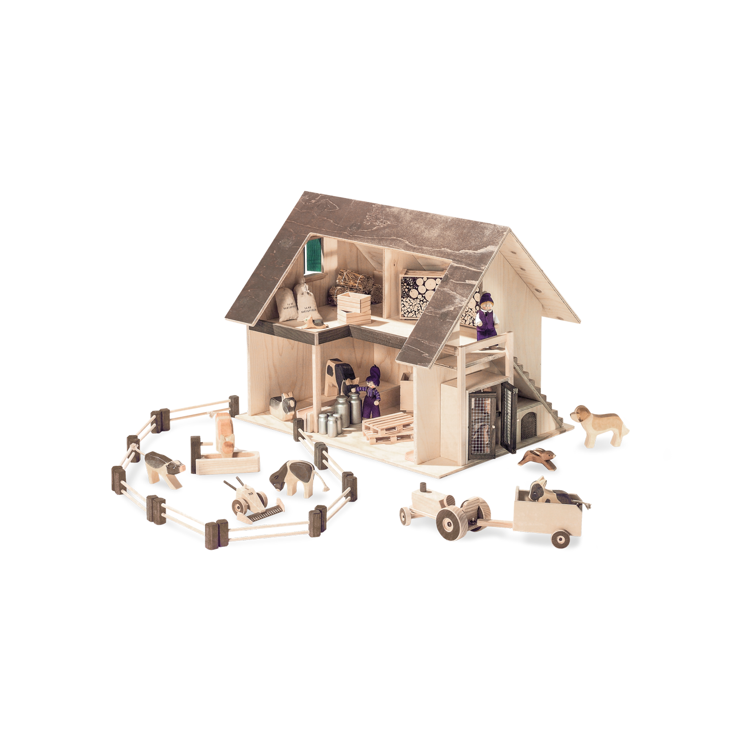 - Vielseitiges Spielhaus: Wohnen, Ställe und Tenne kombinierbar.