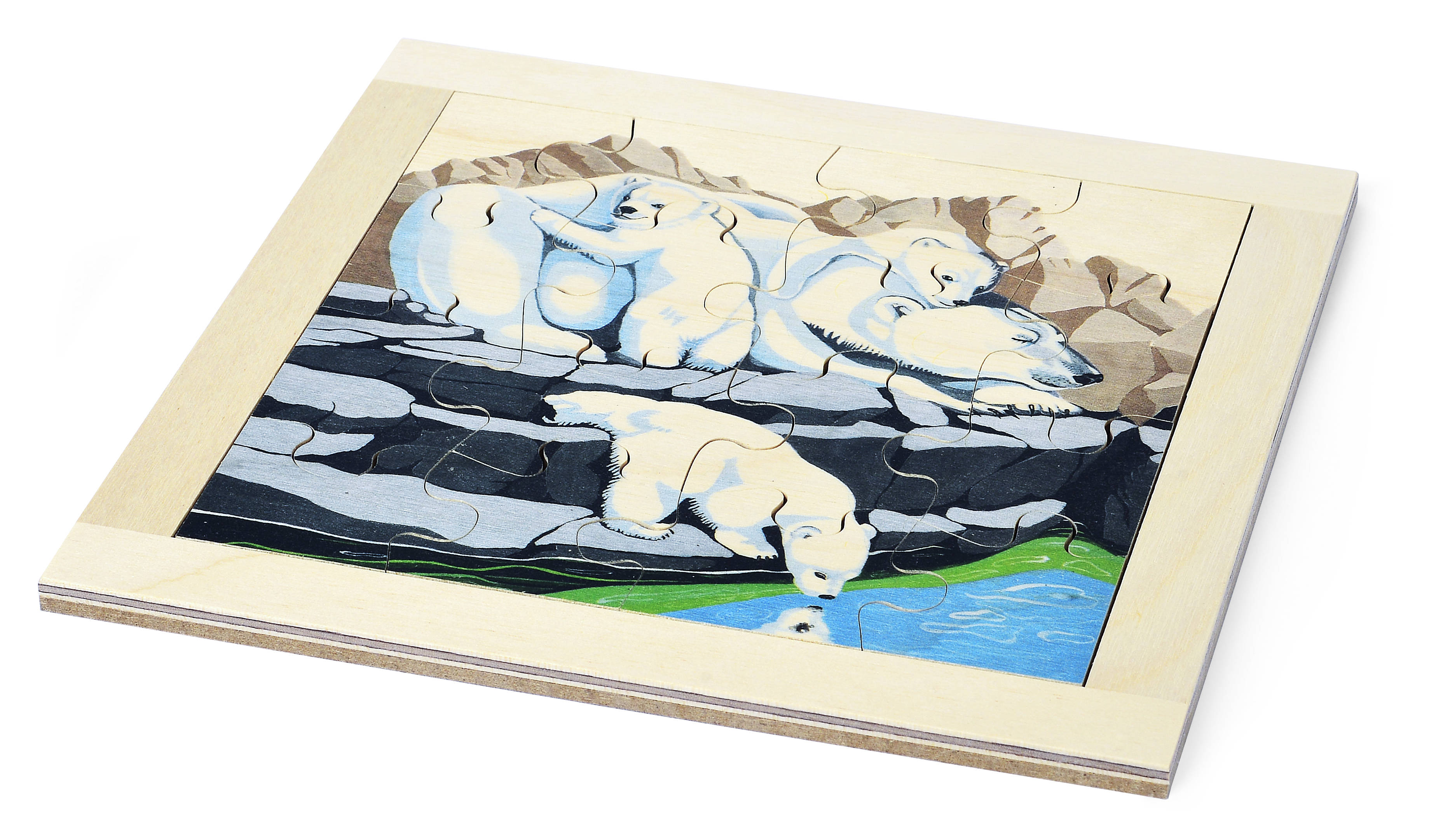 Dieses handliche Puzzle mit 16 Teilen zeigt eine Eisbärfamilie in kindgerechtem Design. Ideal für Kinder ab 3 Jahren, um spielerisch Feinmotorik, Konzentration und das Erkennen von Formen zu fördern.