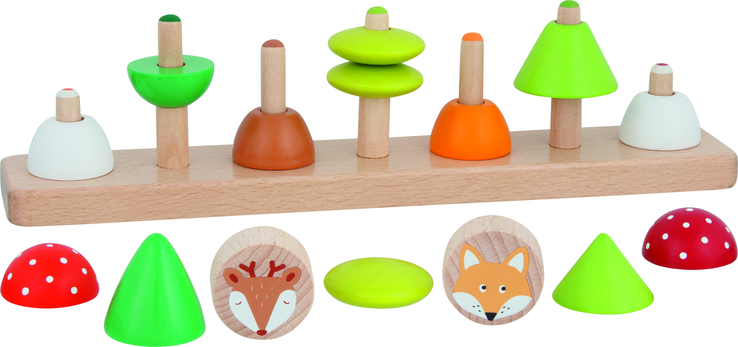 Die niedlichen Waldfreunde aus Buchenholz bieten den Kleinsten eine spielerische Möglichkeit, ihre Feinmotorik und Augen-Hand-Koordination zu verbessern. Mit dem Fuchs und Reh lernen die Kinder nicht nur die ersten Waldbewohner kennen, sondern auch den Lebensraum der Nadel- und Laubbäume. Der Glückspilz darf natürlich nicht fehlen und rundet das Tier- und Naturerlebnis ab. Dank der hochwertigen goki-Verpackung ist dieses Sortierspiel das perfekte Geschenk zum 2. Geburtstag, das sowohl lehrreich als auch unterhaltsam ist.