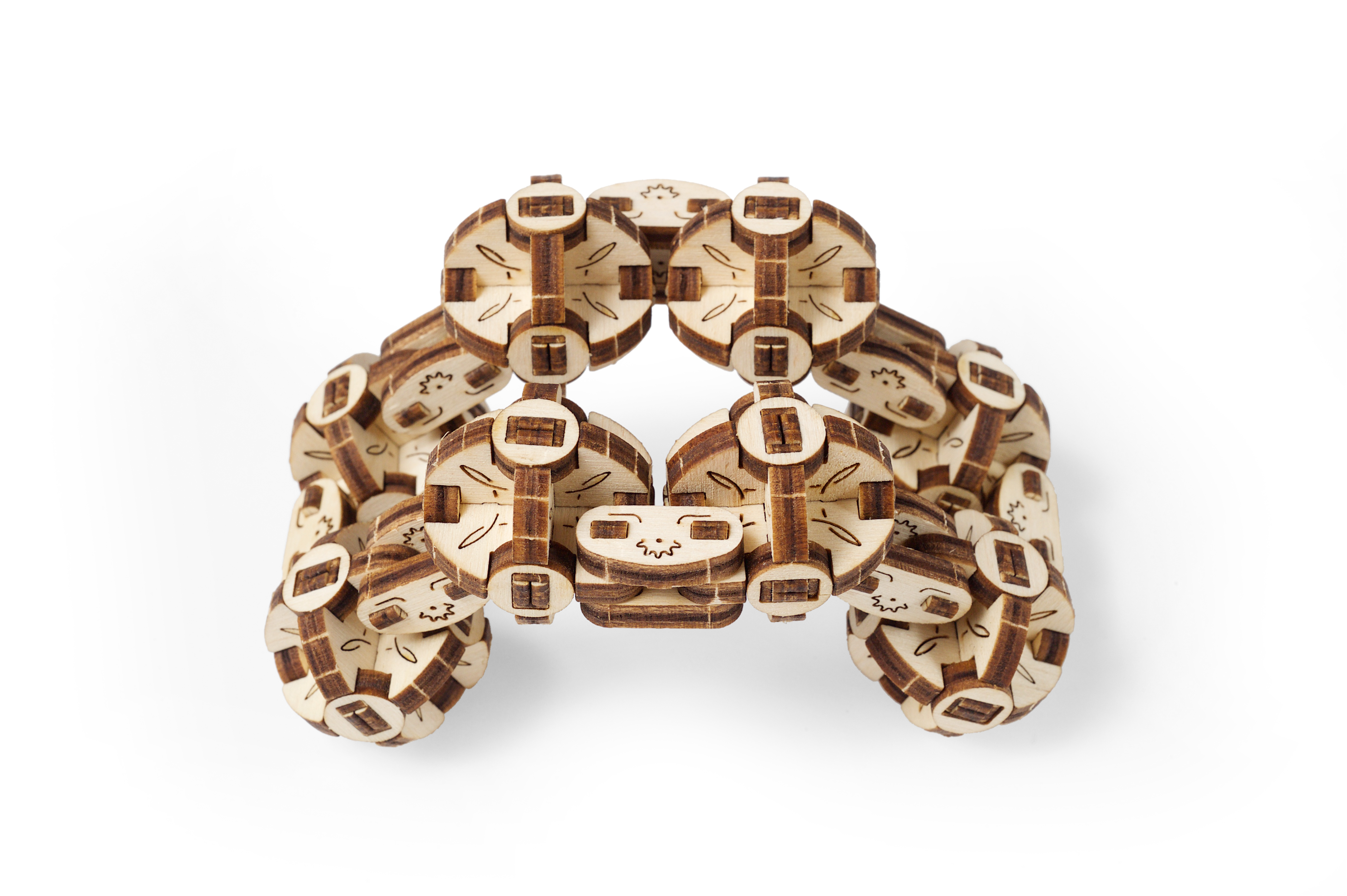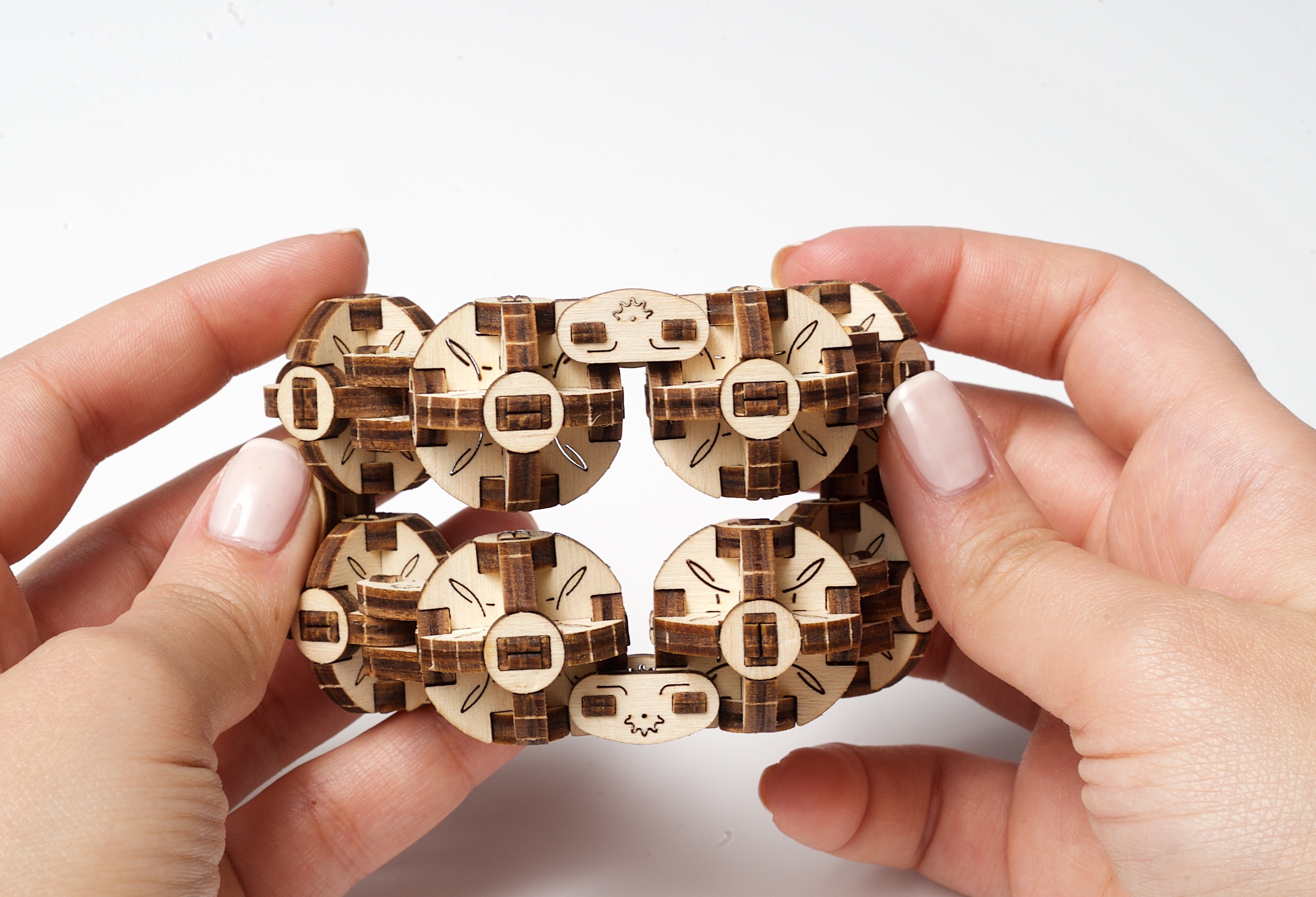 Der neue UGEARS Flexi-Würfel ist ein mechanisches, oktaedrisches Puzzle im Steampunk-Stil, bestehend aus acht beweglichen Teilen. Jedes Segment enthält sechs Drehgelenke, die es ermöglichen, den Würfel flexibel zu transformieren und in verschiedene geometrische Formen zu bringen.