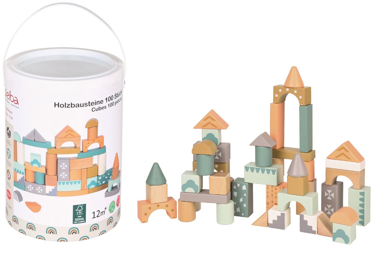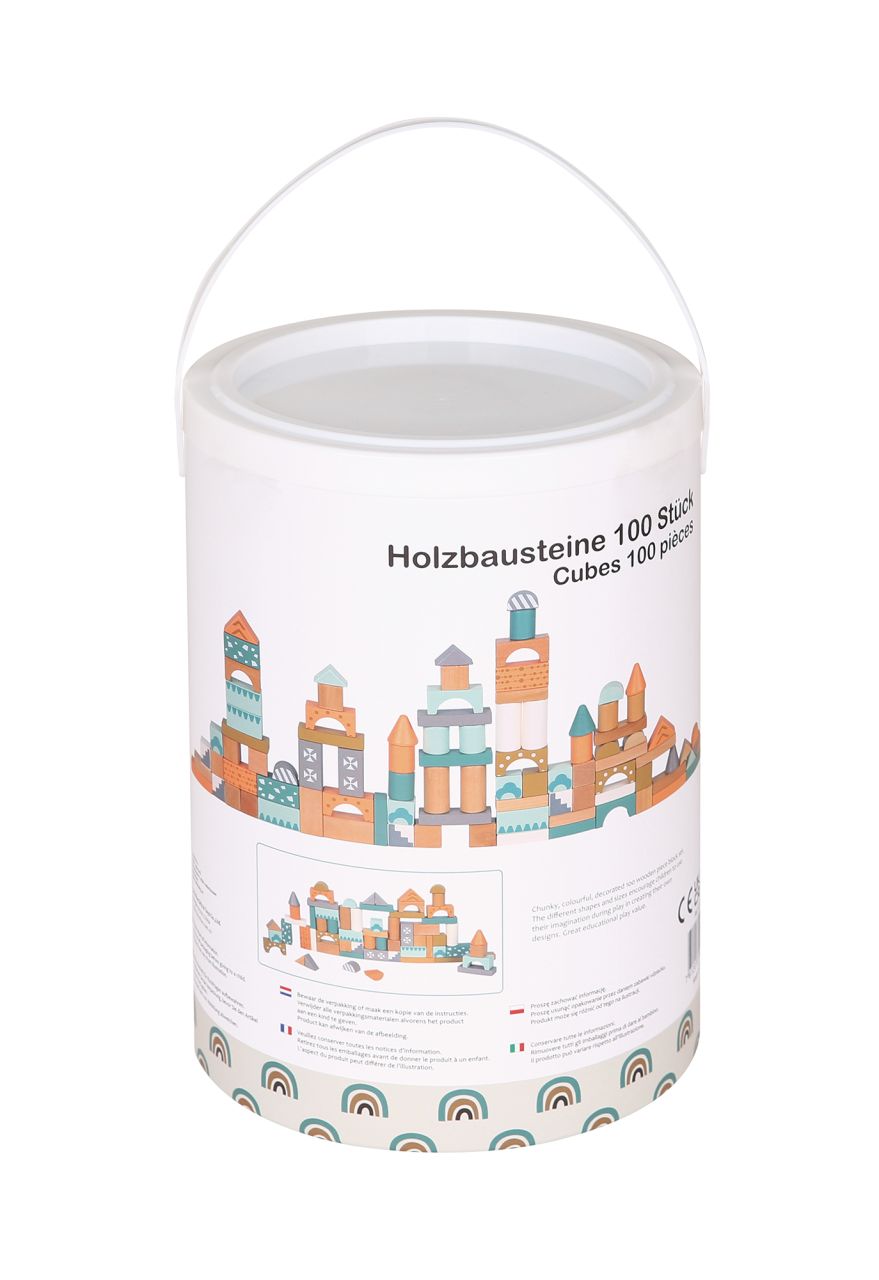 Der Klassiker unter den Spielwaren. Box mit 100 Holzbausteinen (3cm), verpackt in einer stabilen Kartontrommel. Bereits ab einem Jahr können die Kinder mit den Bausteinen spielen und ihre Motorik und Koordination fördern.