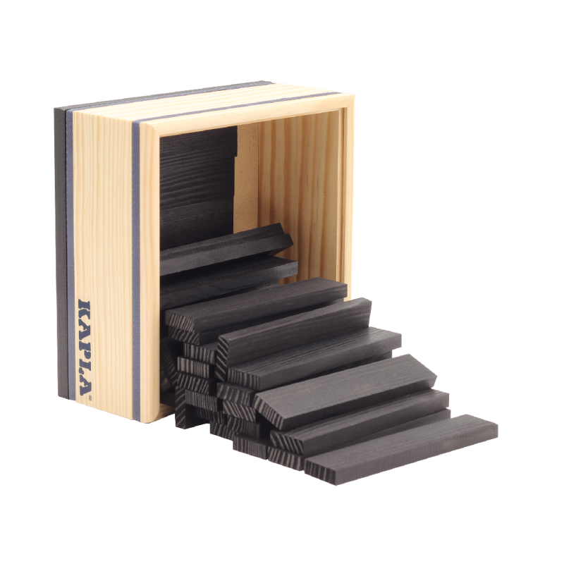 Die KAPLA-Plättchen sind aus naturbelassenem, nachhaltigem Pinienholz (Seekiefer) gefertigt, das aus französischen, zu 100% nachhaltig bewirtschafteten Wäldern stammt. Die farbigen Holzplättchen sind mit lebensmittelechter Farbe gefärbt.