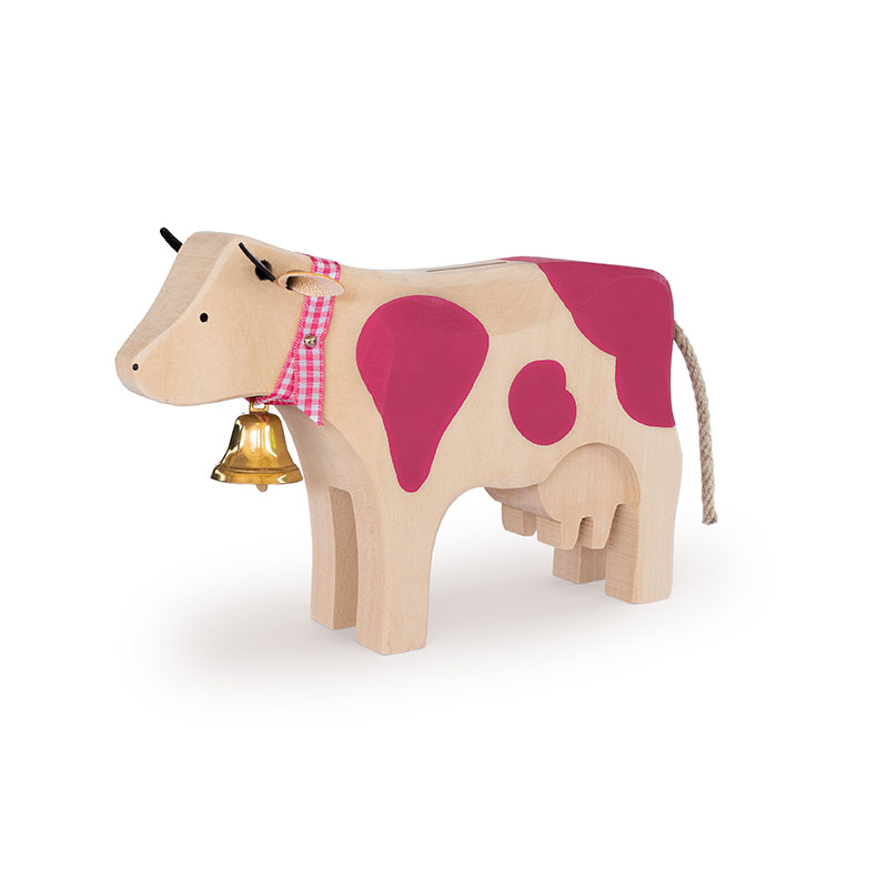 Diese liebevoll gestaltete Holzkasse in Kuhform ist nicht nur ein Hingucker, sondern auch richtig praktisch: Ob Münzen oder Geldscheine – im Bauch der Kässelikuh ist für jeden Batzen Platz.
