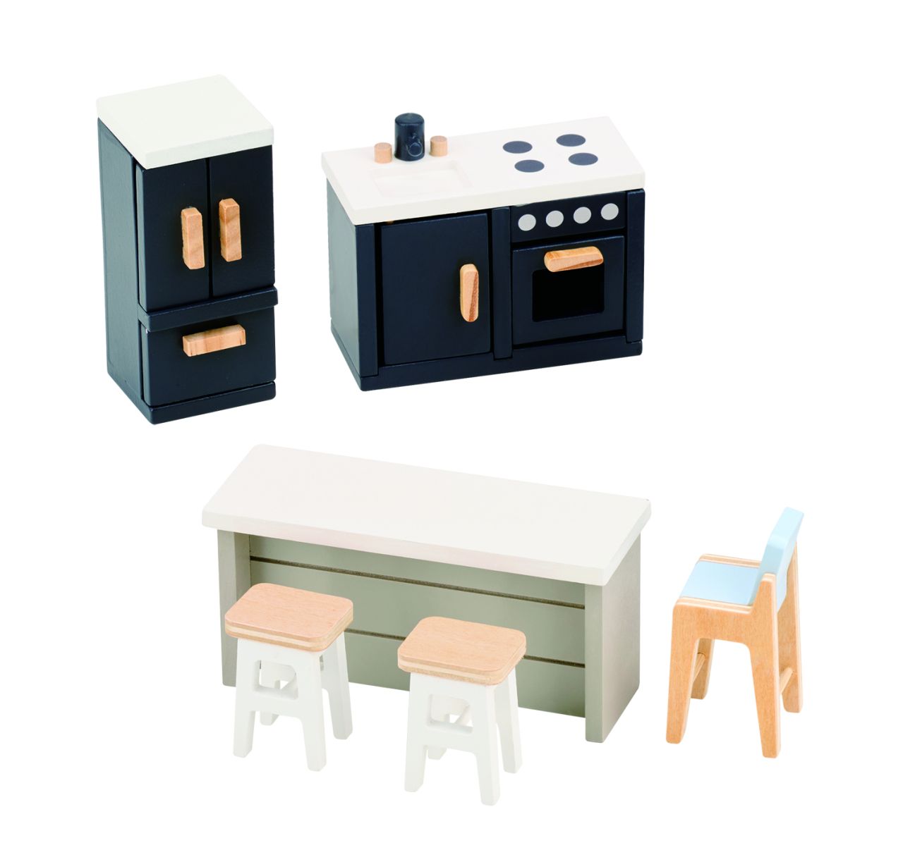 Schöne 6-teilige Puppenhaus-Küche aus hochwertigem Holz von Spielba.
