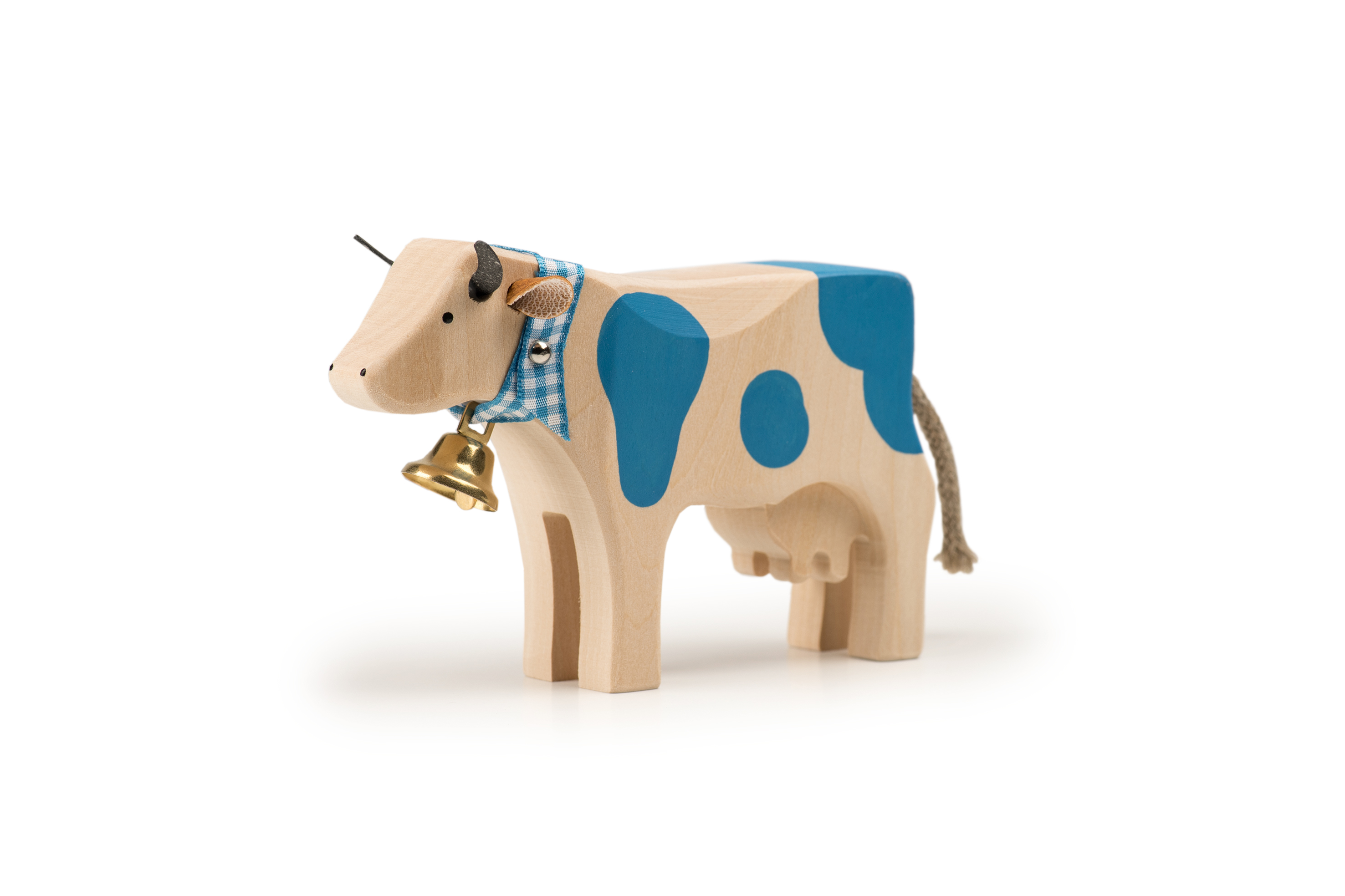 Die Kühe von Trauffer Holzspielwaren werden im Berner Oberland mit viel Liebe von Hand gefertigt. Dabei verwenden wir zertifiziertes FSC-Lindenholz aus nachhaltigen Schweizer Quellen und Farben, die für Kinder völlig unbedenklich sind. Die Schwänze der Kühe werden in der Seilerei Fehr im Thurgau hergestellt. Unsere Kühe sind besonders robust verarbeitet, sodass sie sich nicht nur als wunderschöne Souvenirs, sondern auch perfekt zum Spielen für Kinder eignen.