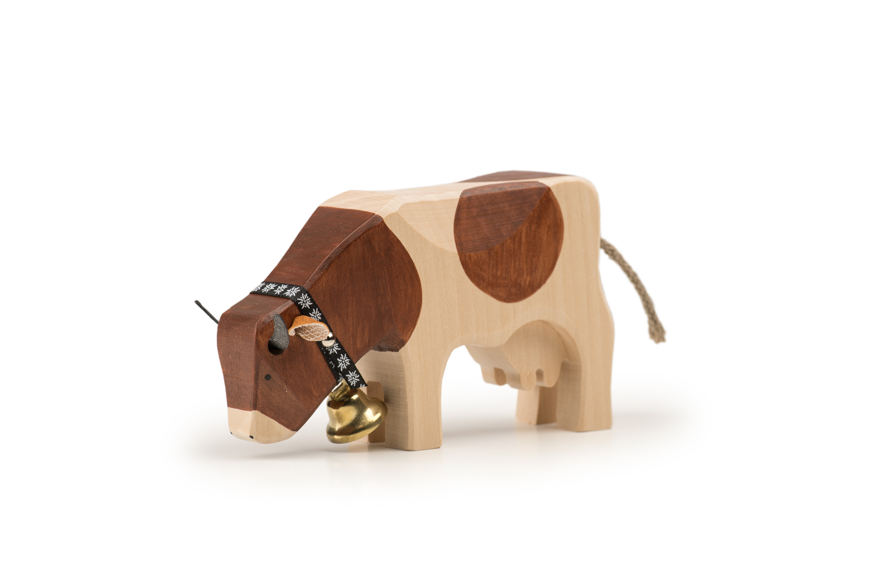 Die Kühe von Trauffer Holzspielwaren werden im Berner Oberland mit viel Liebe von Hand gefertigt. Dabei verwenden wir zertifiziertes FSC-Lindenholz aus nachhaltigen Schweizer Quellen und Farben, die für Kinder völlig unbedenklich sind. Die Schwänze der Kühe werden in der Seilerei Fehr im Thurgau hergestellt. Unsere Kühe sind besonders robust verarbeitet, sodass sie sich nicht nur als wunderschöne Souvenirs, sondern auch perfekt zum Spielen für Kinder eignen.
