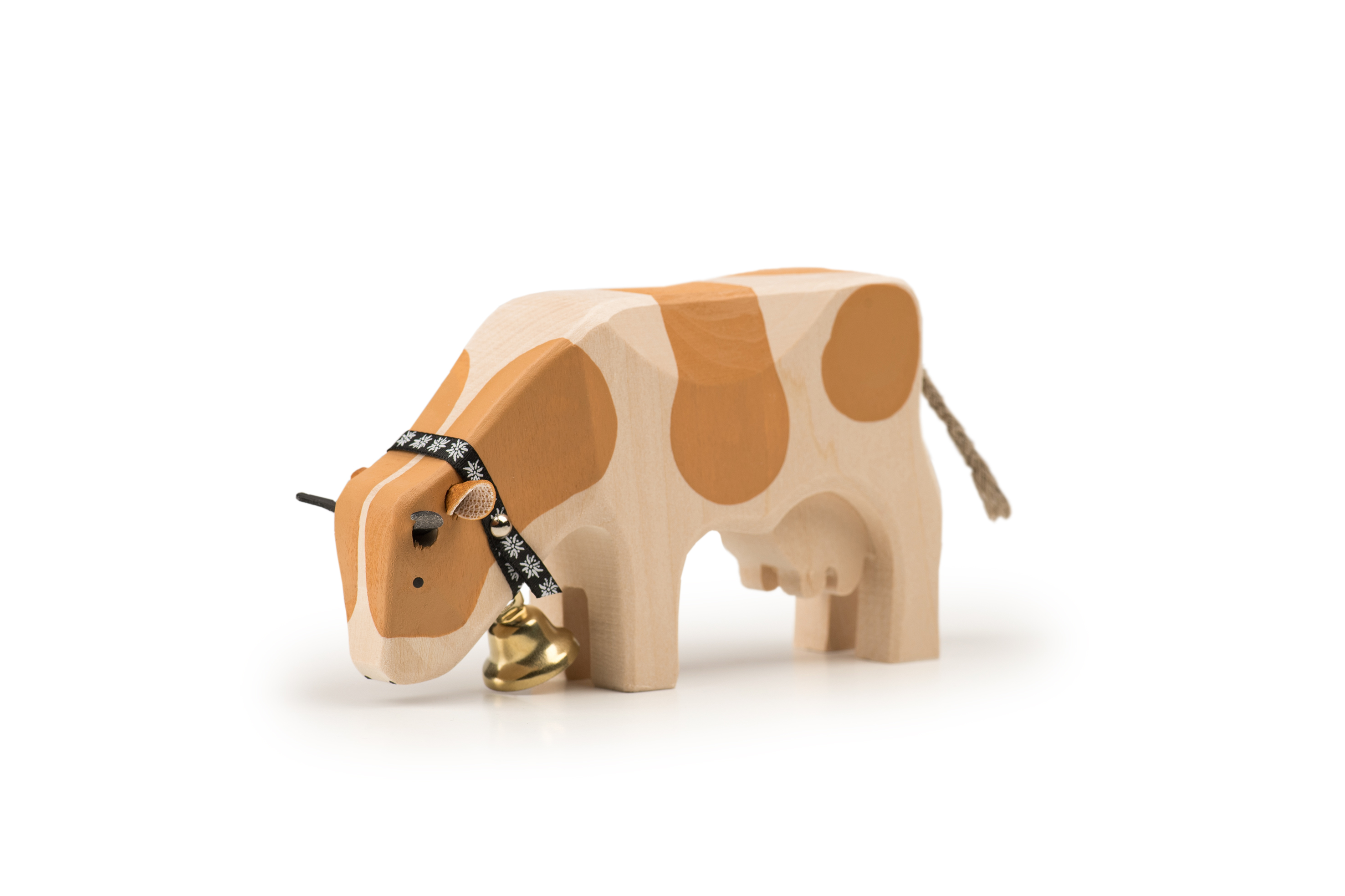 Die Kühe von Trauffer Holzspielwaren werden im Berner Oberland mit viel Liebe von Hand gefertigt. Dabei verwenden wir zertifiziertes FSC-Lindenholz aus nachhaltigen Schweizer Quellen und Farben, die für Kinder völlig unbedenklich sind. Die Schwänze der Kühe werden in der Seilerei Fehr im Thurgau hergestellt. Unsere Kühe sind besonders robust verarbeitet, sodass sie sich nicht nur als wunderschöne Souvenirs, sondern auch perfekt zum Spielen für Kinder eignen.