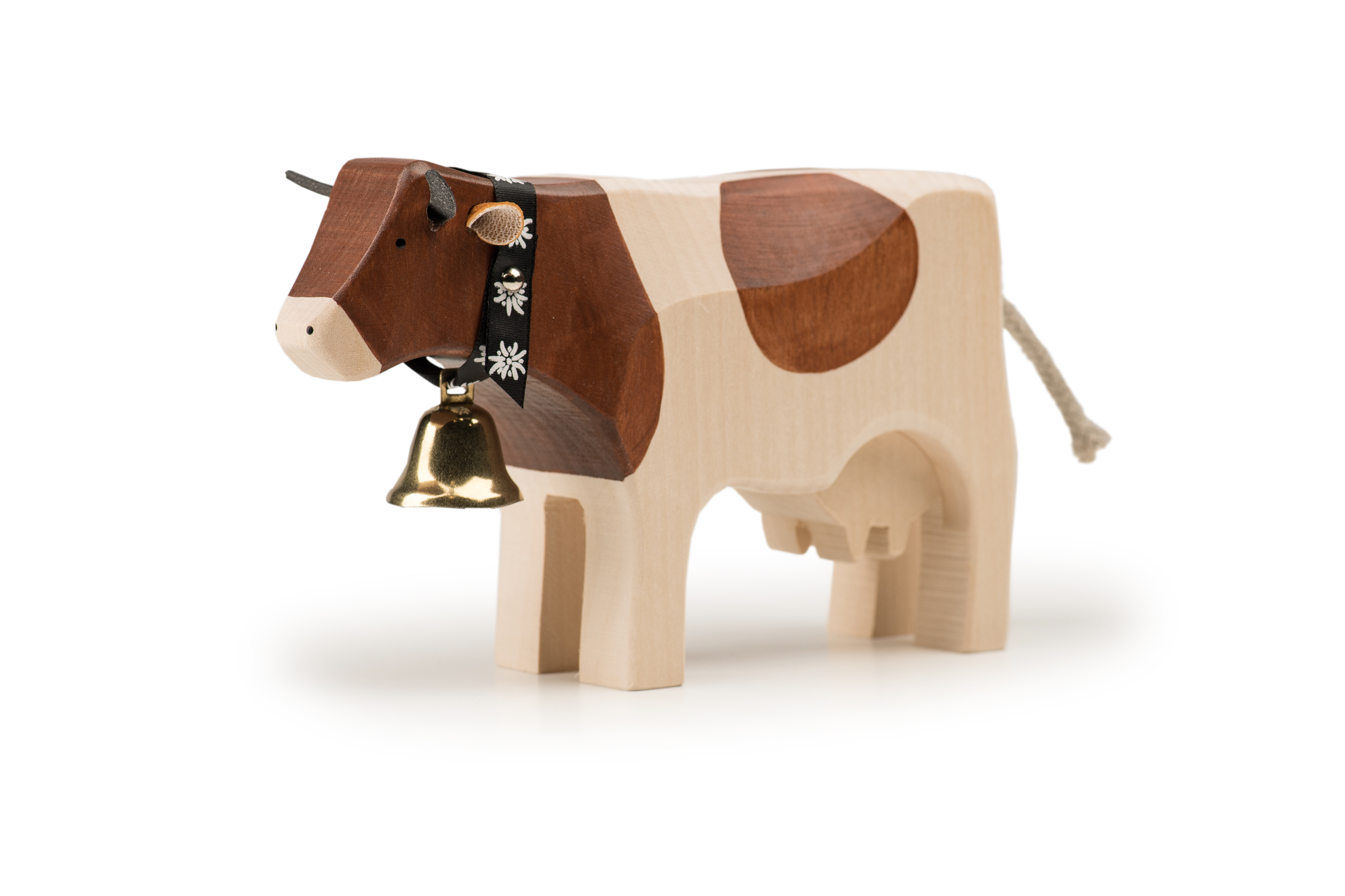 Die Kühe von Trauffer Holzspielwaren werden im Berner Oberland mit viel Liebe von Hand gefertigt. Dabei verwenden wir zertifiziertes FSC-Lindenholz aus nachhaltigen Schweizer Quellen und Farben, die für Kinder völlig unbedenklich sind. Die Schwänze der Kühe werden in der Seilerei Fehr im Thurgau hergestellt. Unsere Kühe sind besonders robust verarbeitet, sodass sie sich nicht nur als wunderschöne Souvenirs, sondern auch perfekt zum Spielen für Kinder eignen.