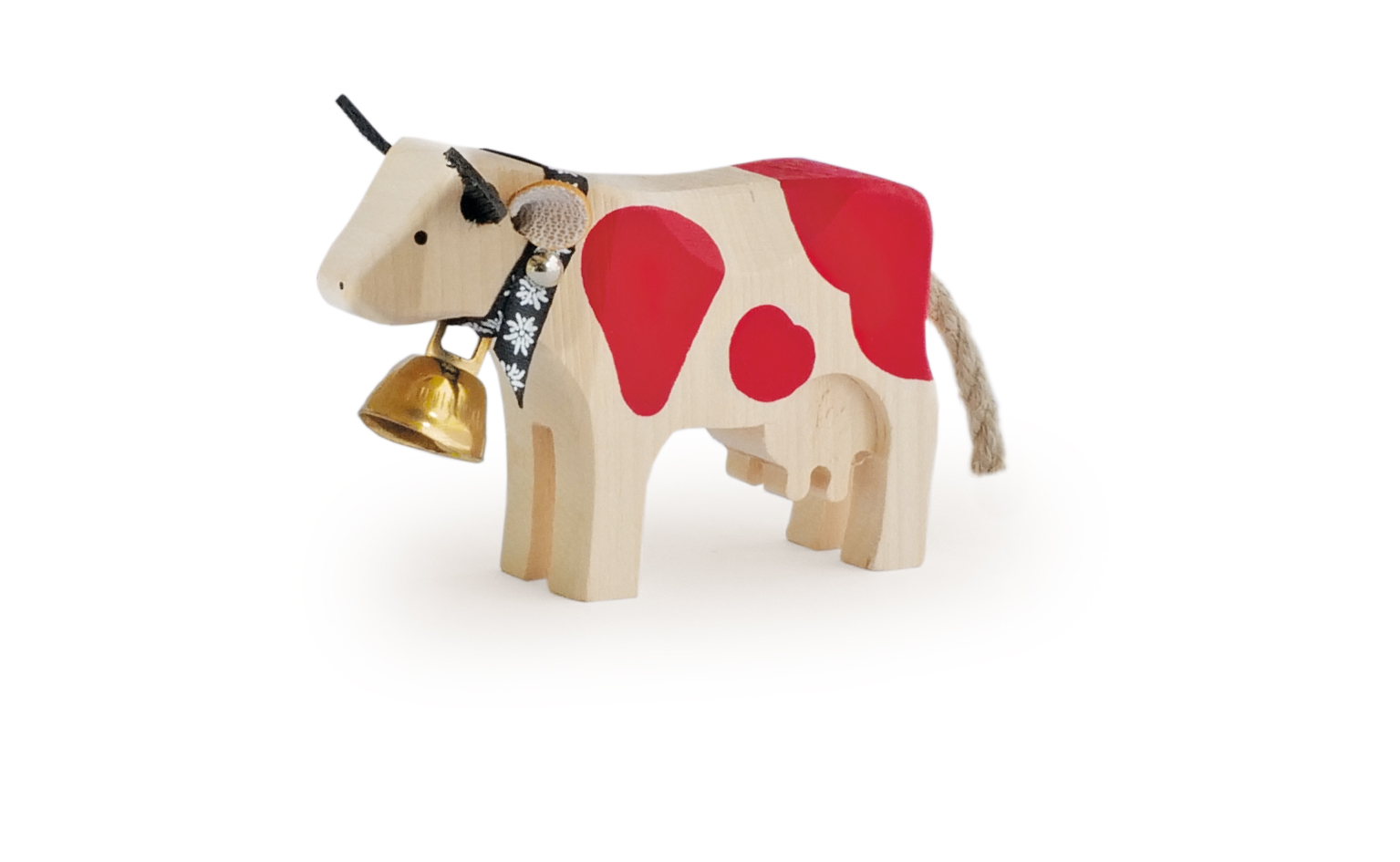 Jede Kuh wird im Berner Oberland von Hand gefertigt, aus FSC-zertifiziertem Lindenholz aus nachhaltiger Schweizer Forstwirtschaft – bemalt mit kindersicheren Farben. Die Schwänzli stammen übrigens aus der Seilerei Fehr im Thurgau.