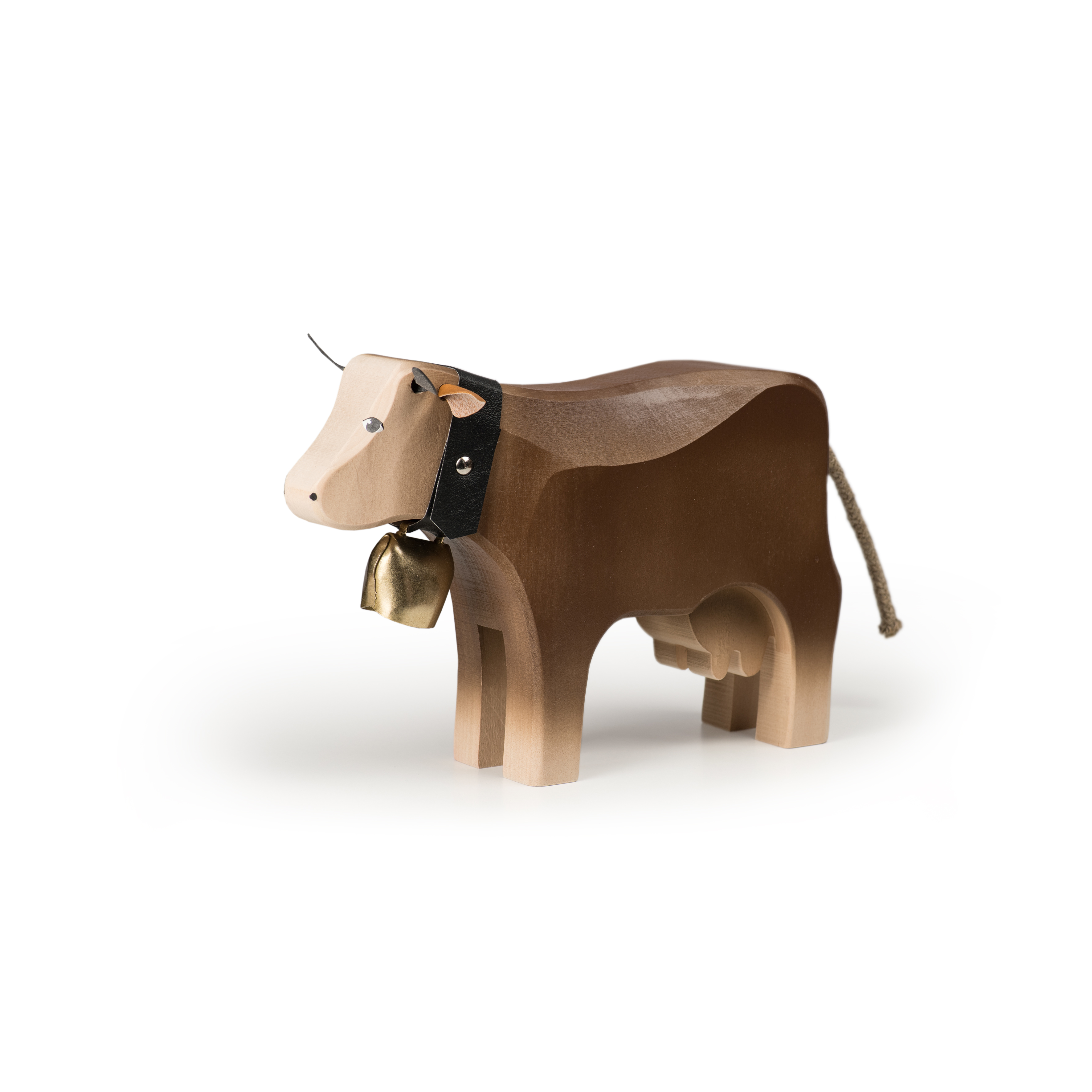 Die Kühe von Trauffer Holzspielwaren werden im Berner Oberland mit viel Liebe von Hand gefertigt. Dabei verwenden wir zertifiziertes FSC-Lindenholz aus nachhaltigen Schweizer Quellen und Farben, die für Kinder völlig unbedenklich sind. Die Schwänze der Kühe werden in der Seilerei Fehr im Thurgau hergestellt. Unsere Kühe sind besonders robust verarbeitet, sodass sie sich nicht nur als wunderschöne Souvenirs, sondern auch perfekt zum Spielen für Kinder eignen.