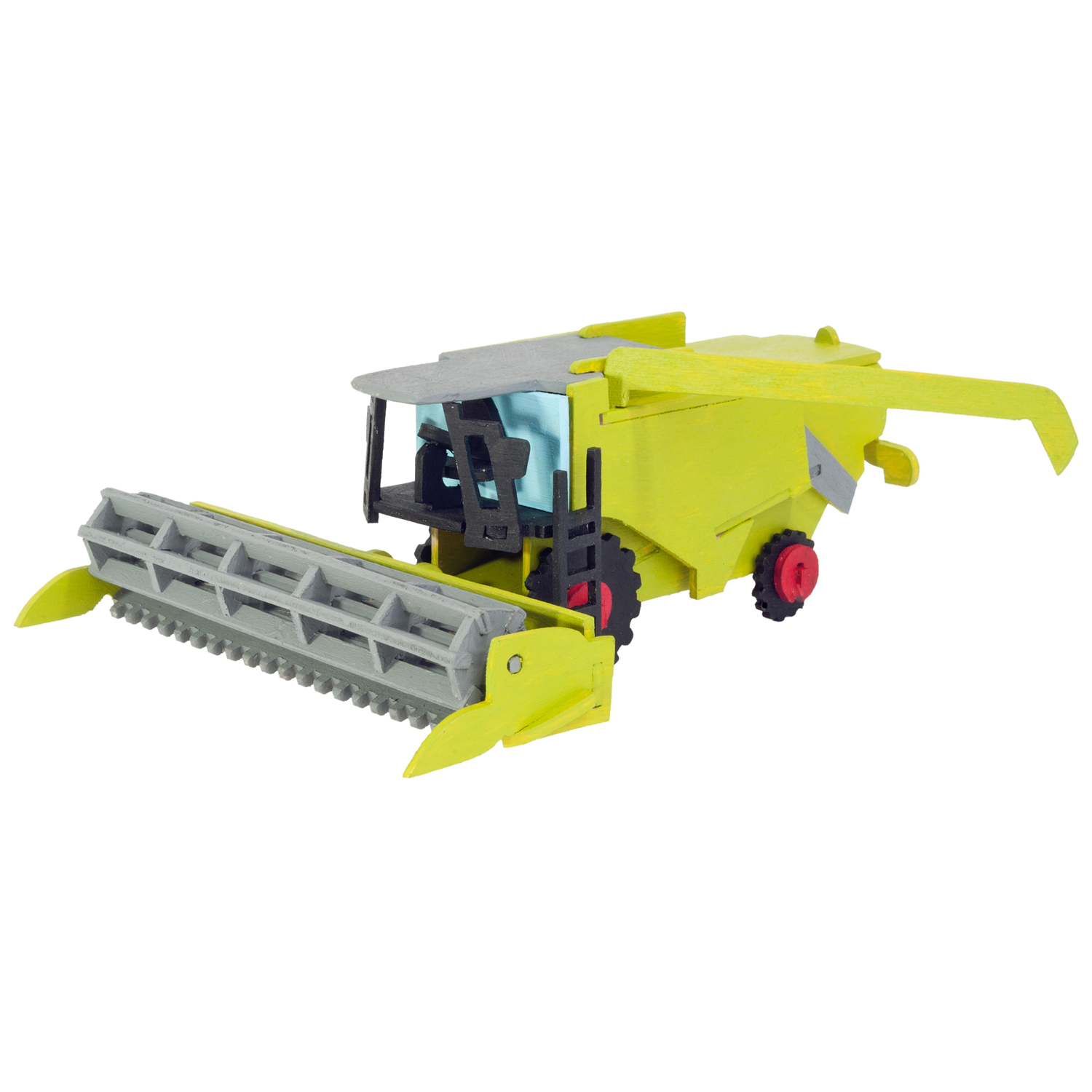 - Eine kreative Sperrholzvorlage, mit dem Motiv \"Mähdrescher\", bereit zum Aussägen mit einer Laubsäge.