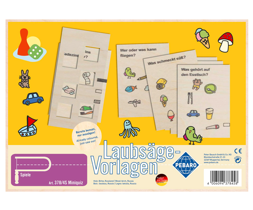 - Kreativ-Set: Miniquiz-Motiv aussägen, bemalen, zusammenbauen, fertig.