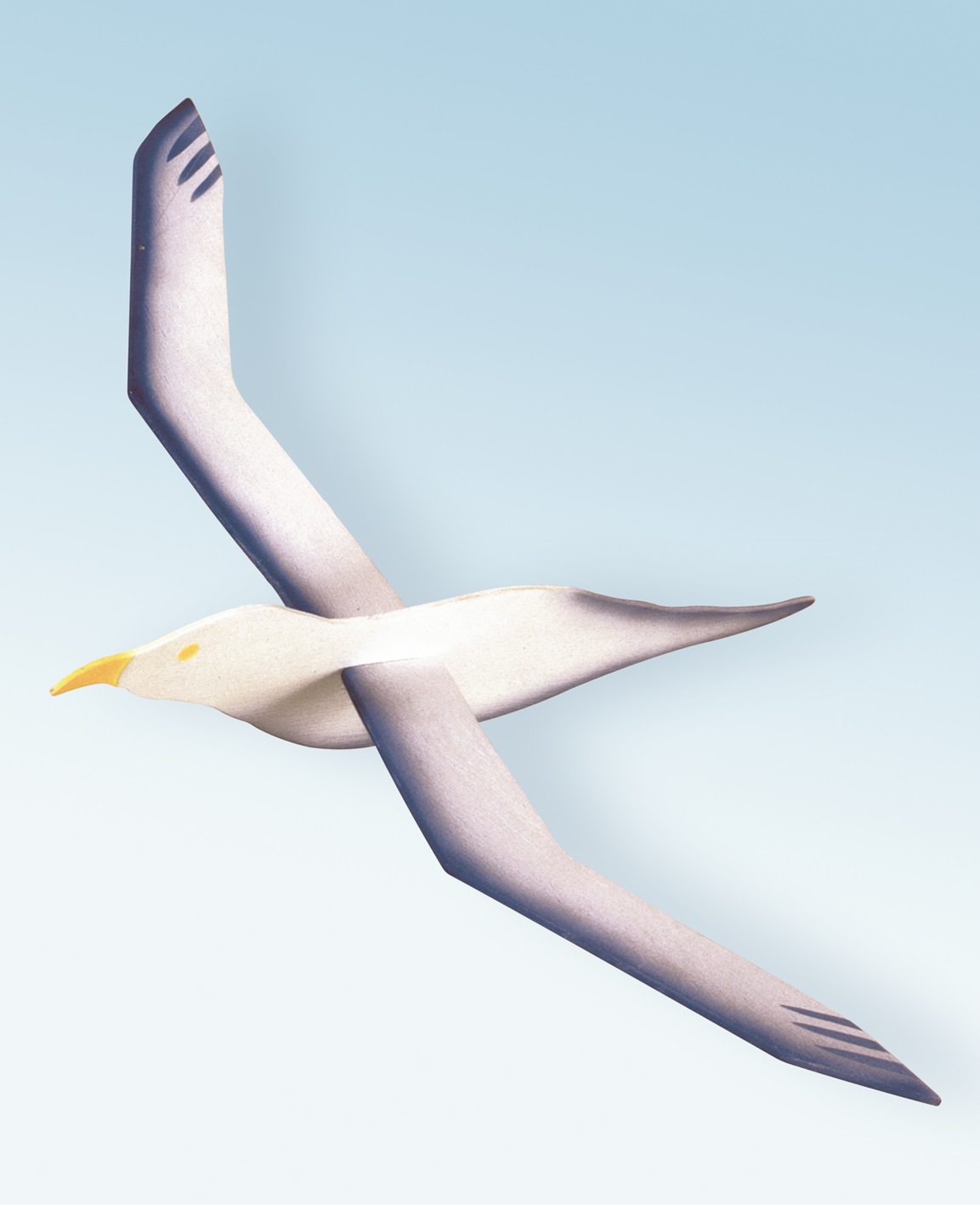 - Eine kreative Sperrholzvorlage, mit dem Motiv \"Möwe\", bereit zum Aussägen mit einer Laubsäge.