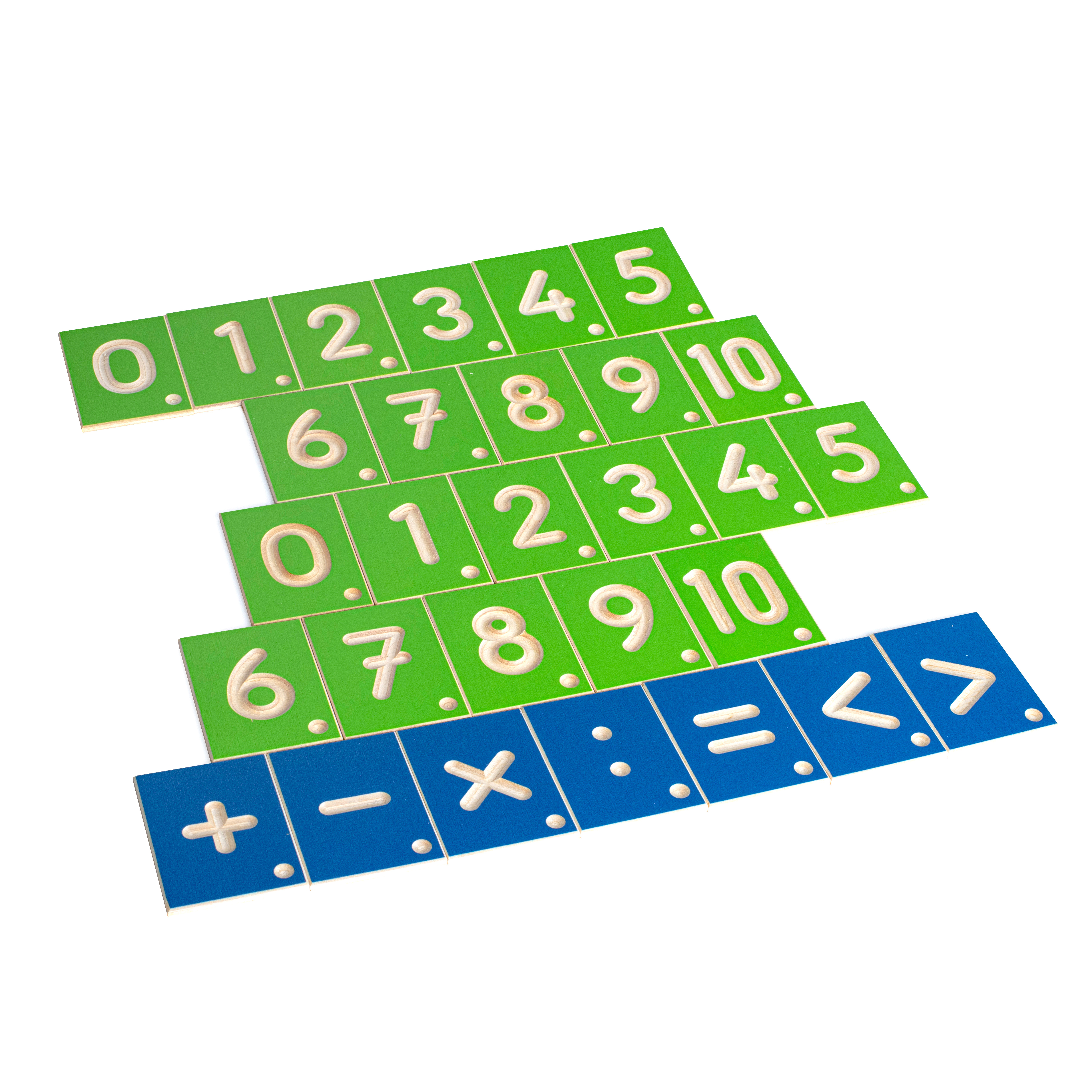 Die Holztäfelchen ermöglichen es bereits, einfache Rechenaufgaben und Größenvergleiche darzustellen und zu verstehen. Durch ihre taktilen Eigenschaften sind die Täfelchen auch in der Sonderpädagogik, insbesondere bei Sehschwachen und Blinden, einsetzbar. Der Markierungspunkt auf den Holztafeln, der sich rechts unten befindet, stellt sicher, dass die Zahl nicht auf dem Kopf steht.