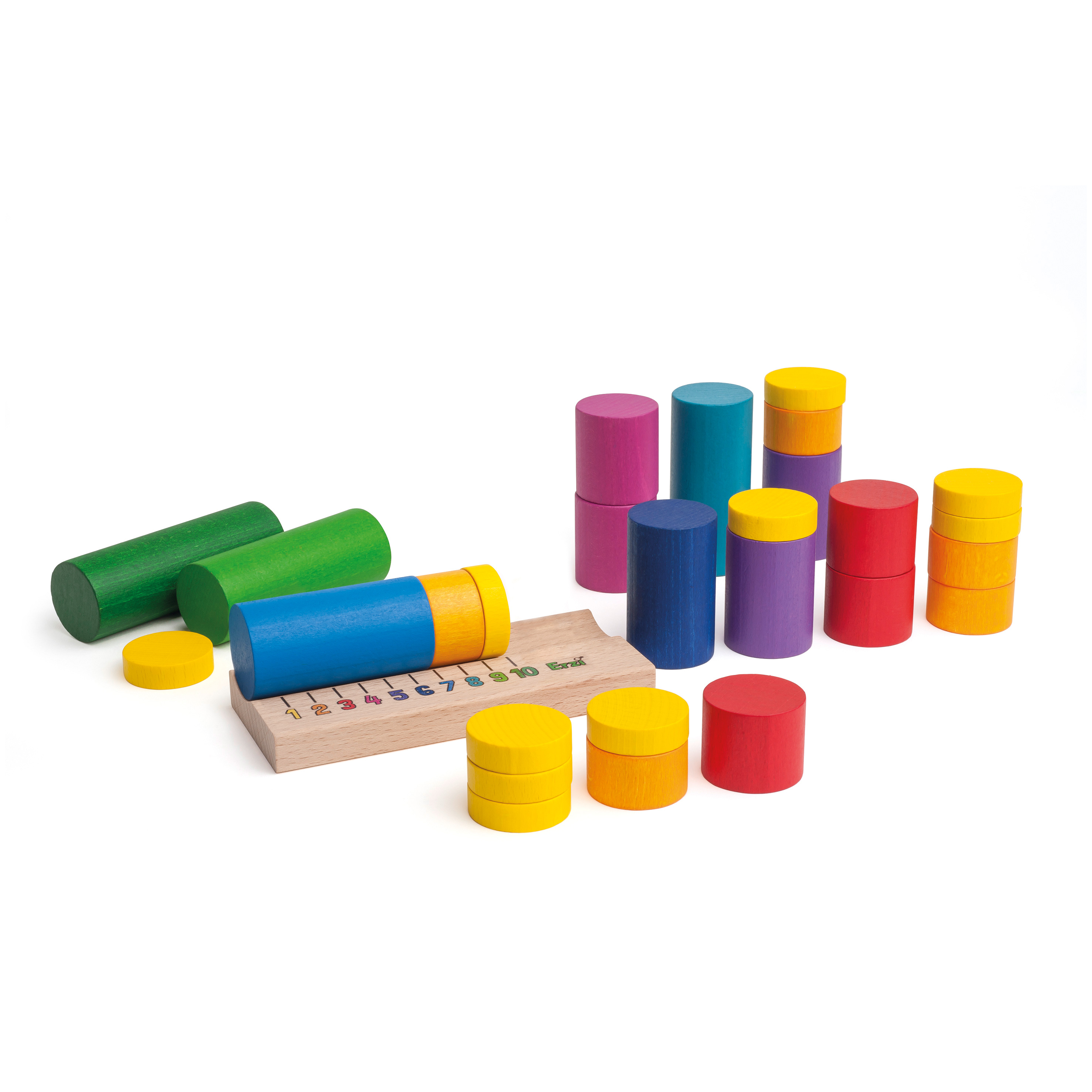 Dieses Holzspielzeug eignet sich ideal zum Legen und Darstellen kleiner Rechenaufgaben wie Addition bis 10, zur Veranschaulichung einfacher Brüche wie 2 Halbe, 3 Drittel oder 5 Fünftel, sowie zum freien Vergleichen von gleichen Mengen.