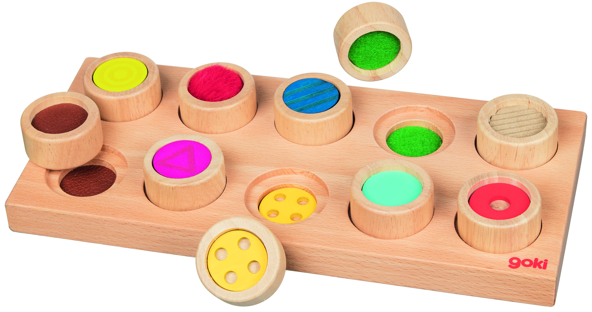 Ertaste die verschiedenen Oberflächen und finde die identischen Paare! Dieses Spiel fördert die taktile Wahrnehmung und schult spielerisch den Tastsinn sowie die Konzentration.