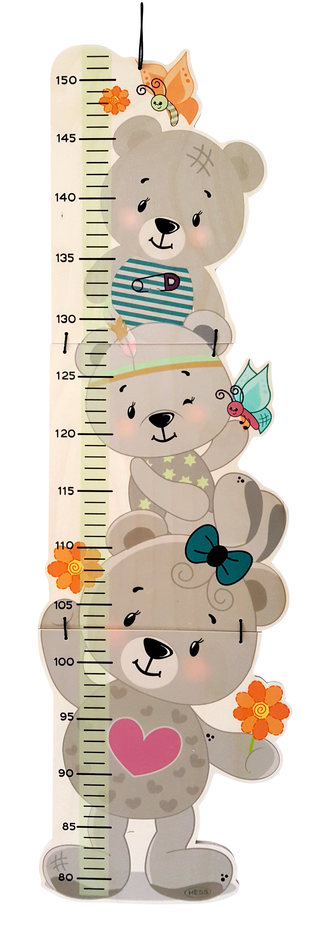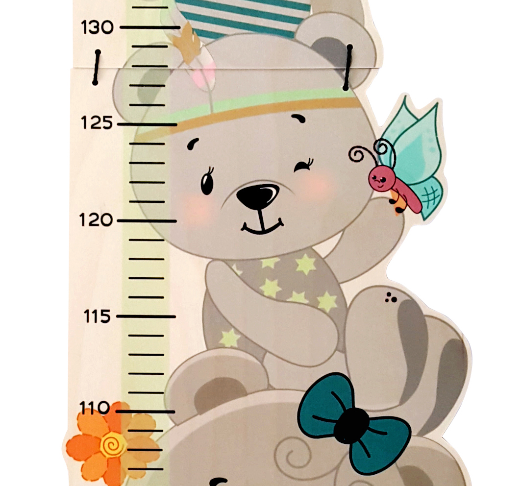 Diese liebevoll gestaltete Holzmesslatte mit niedlichen Teddybärenmotiven in zarten Farbtönen bringt Freude beim Beobachten des Wachstums Ihrer Kleinen.