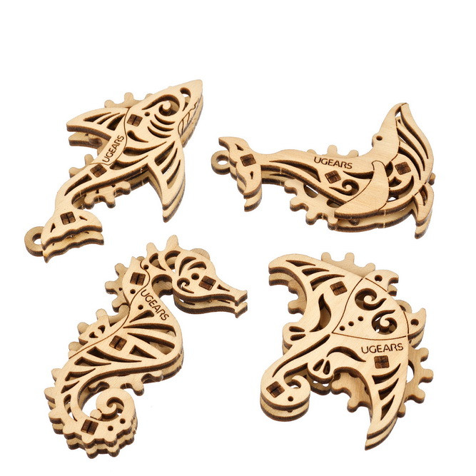 - Stechrochen (5,2 х 0,96 х 4,55 cm) — Ein eleganter und anmutiger Schwimmer, der für seine sanfte Natur bekannt ist, aber auch für seinen giftigen Stachel, der ihn schützt. Diese bedrohte Art ist besonders empfindlich gegenüber Umweltveränderungen.
