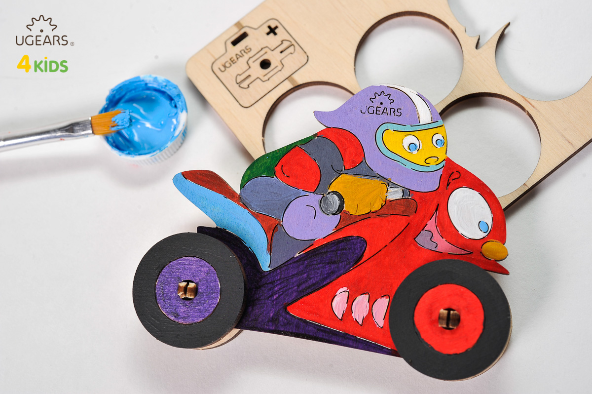 Ugears Ausmal-Set \"Motorradfahrer\" – Kit-Beschreibung
