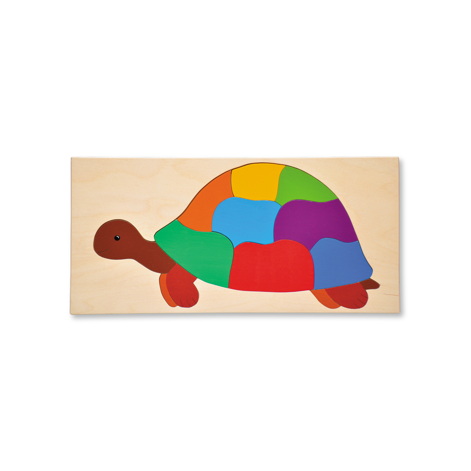 Das 11-teilige Puzzle mit der bunten, handbemalten Schildkröte spricht Kinderaugen an und lädt zum Puzzeln ein. Es fördert spielerisch die Feinmotorik, das Verständnis für Formen und Farben, die Ausdauer und die Merkfähigkeit der Kinder.