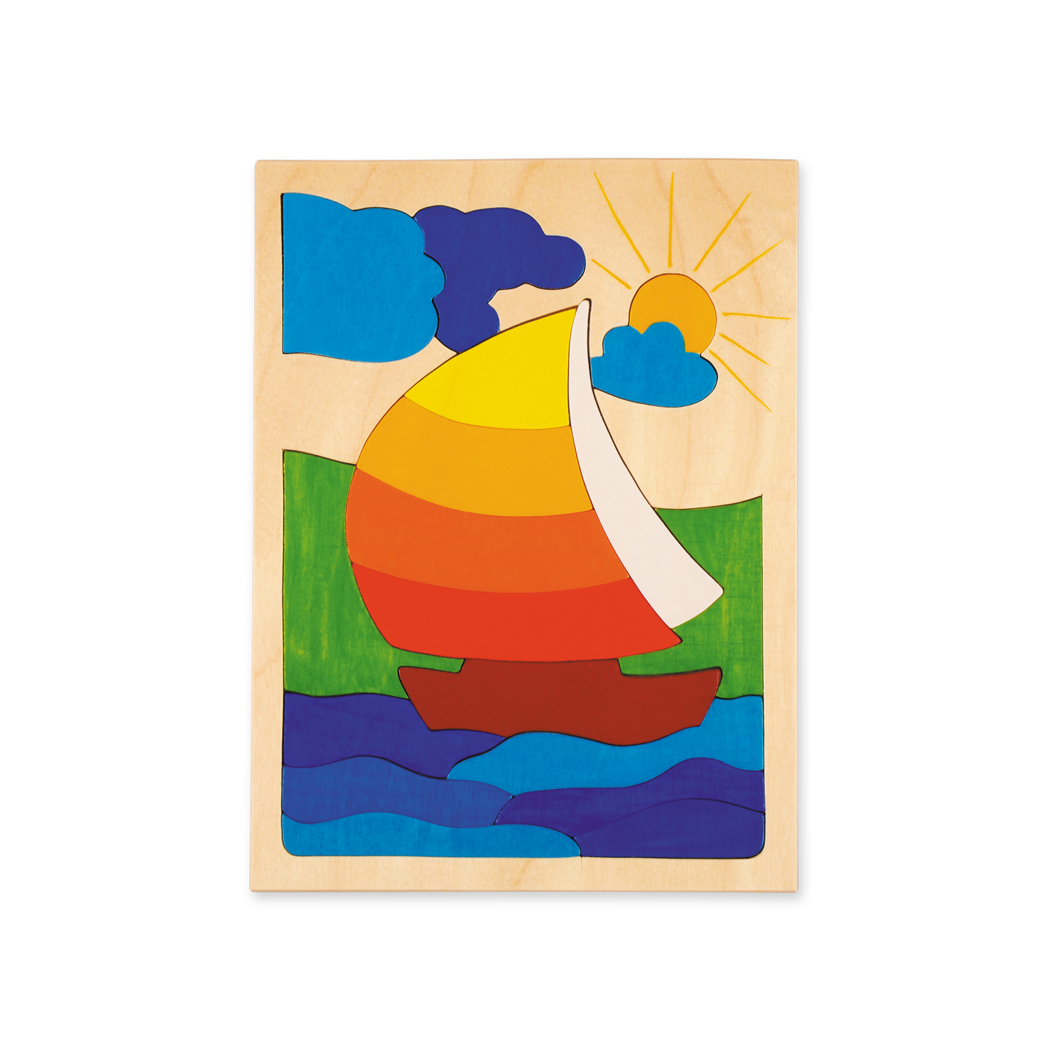 Das handbemalte Segelschiff-Puzzle besteht aus 17 Teilen und ist farbenfroh und verspielt gestaltet. Es lädt Kinder zum Entdecken und Zusammenbauen ein. Das Puzzle fördert die Feinmotorik und die Hand-Auge-Koordination, während Kinder die einzelnen Puzzleteile greifen, halten und richtig platzieren. Durch das Zusammensetzen des Segelschiffs können Kinder ihre Problemlösungsfähigkeiten und ihr räumliches Denken entwickeln.