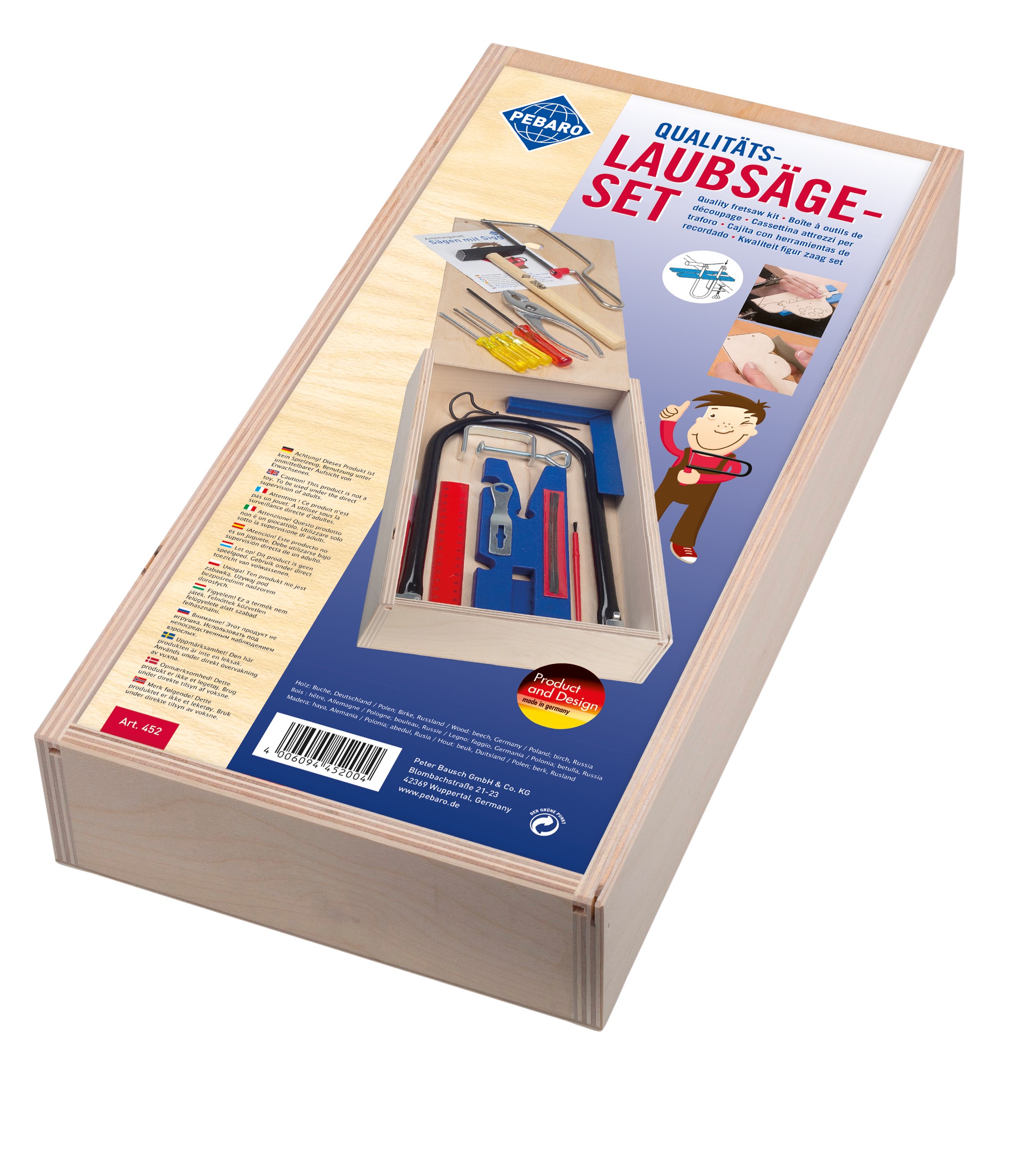 Im Einklang mit der Natur achtet Pebaro verstärkt auf den Einsatz chrom- und bleifreier Lacke und bietet Laubsägelösungen komplett aus Holz ohne Kunststoffteile an. Made in Germany – die Laubsäge-Sets werden ausnahmslos in Deutschland gefertigt. Alle Produkte von Pebaro tragen das CE - Kennzeichen.
