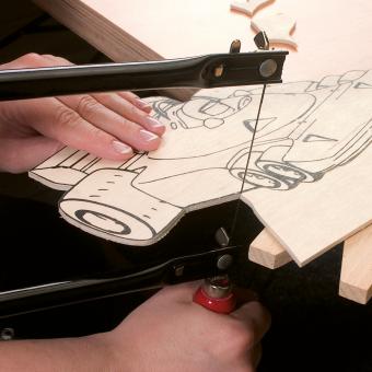 - Inhalt Laubsägewerkzeug: Laubsäge, Laubsägetischchen mit Einspannhalterung aus Holz, Zwinge, Laubsägeblätter, Laubsägeschlüssel