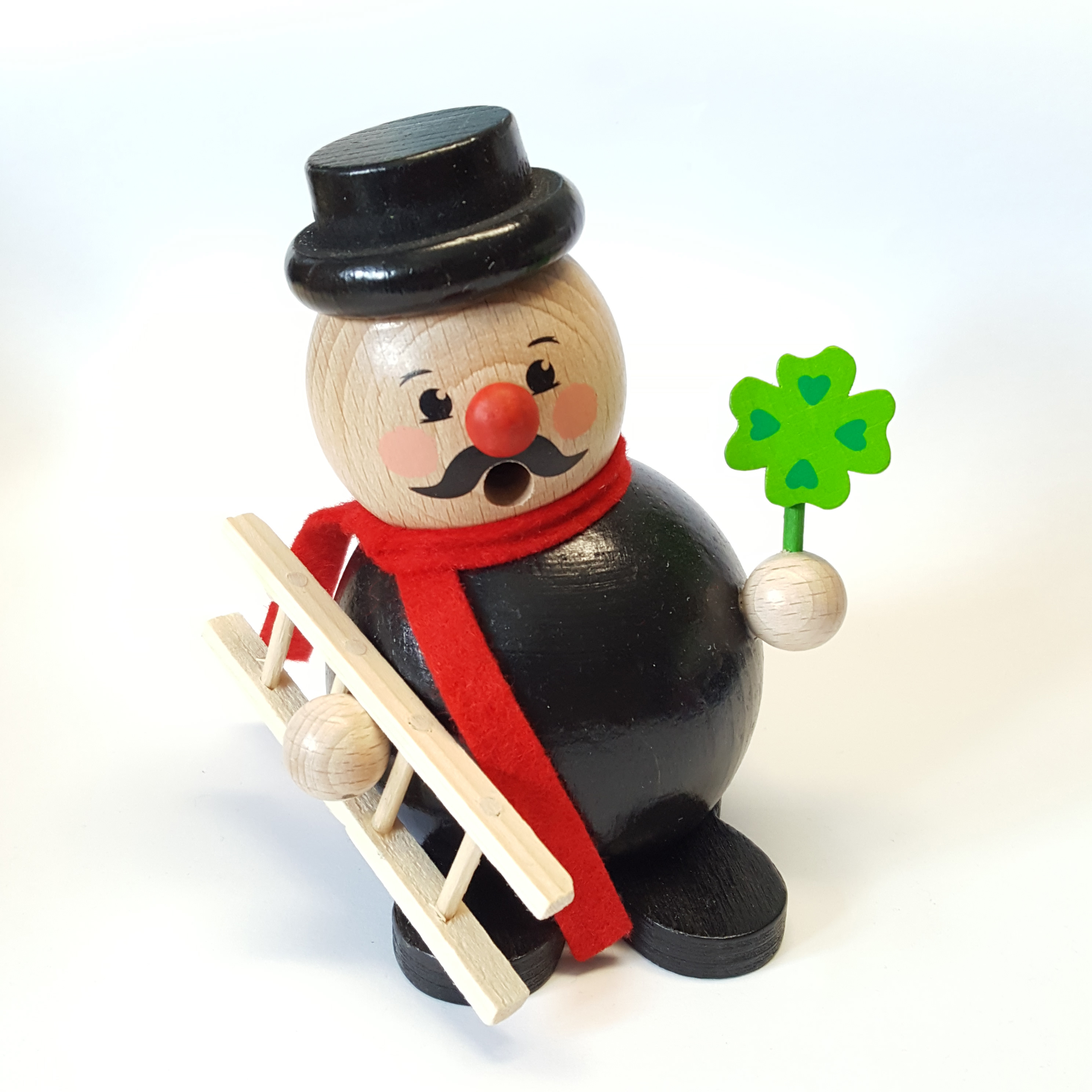 - Glücksbringer-Design: Fröhlicher Schornsteinfeger mit Kleeblatt, Leiter.