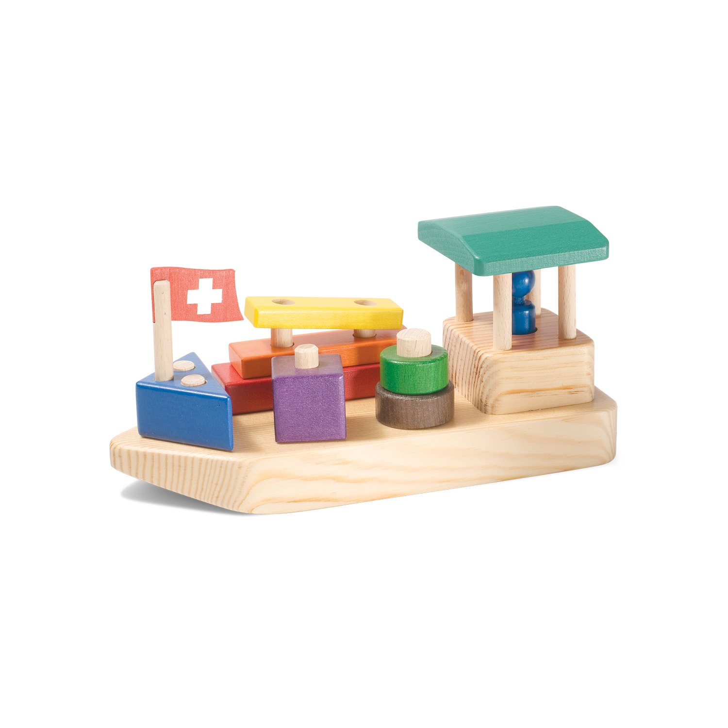 Die Holzspielwaren, die in der eigenen Holzmanufaktur in Port bei Bern gefertigt werden, zeichnen sich durch kindgerechtes Design, bunte Farbgebung und hohe Materialqualität aus. Die Spielwaren werden vom rohen Brett bis zum Endprodukt durchwegs in der Holzmanufaktur hergestellt.