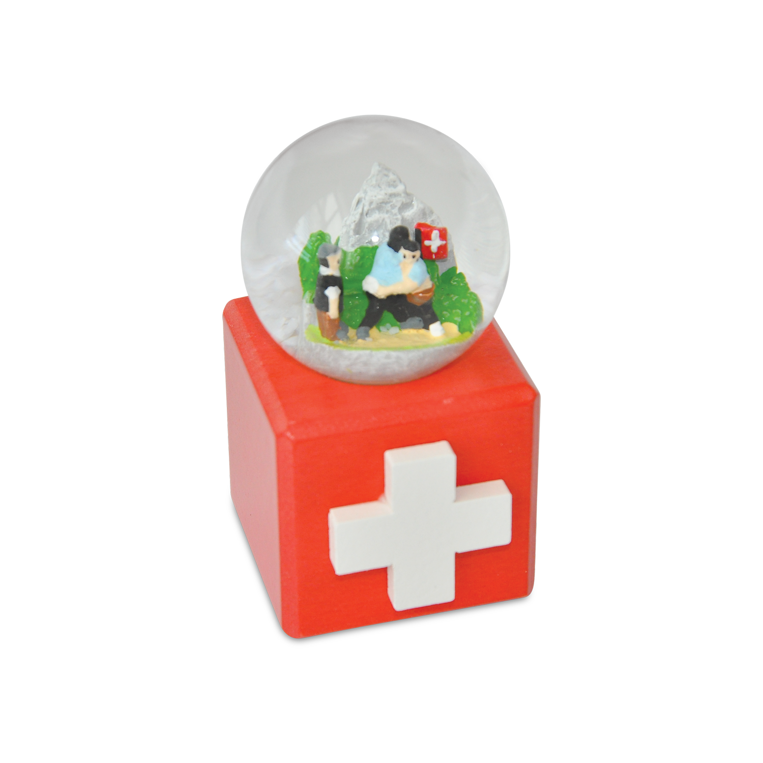 Die Schneekugel ist eine qualitativ hochwertig gearbeitete und detailreich gestaltete Kugel mit einem Motiv aus den Schweizer Bergen. Der Sockel der Schneekugel ist mit dem ikonischen Schweizer Kreuz verziert.