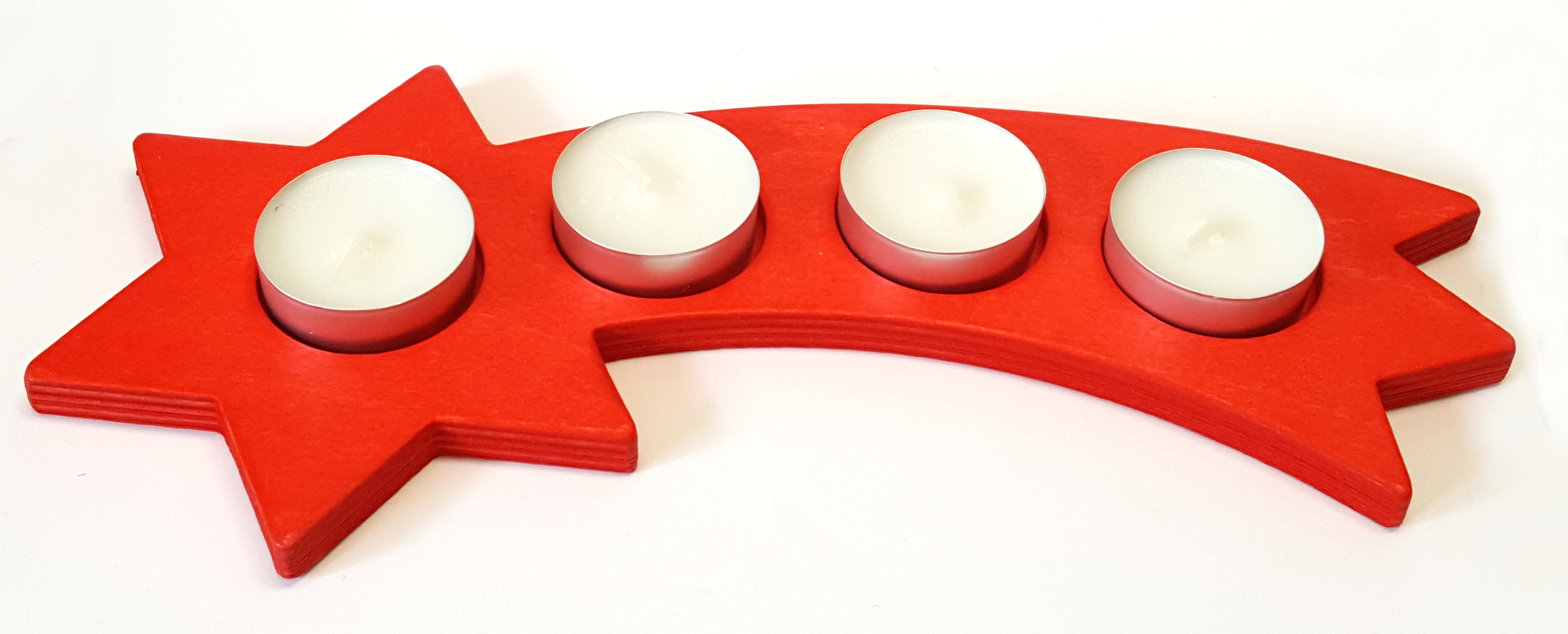- Zeitloses Design: Roter Holzstern mit elegantem Schweif.