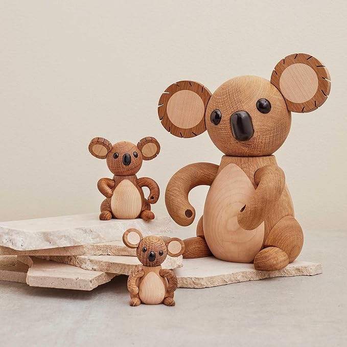 Die niedliche Koala-Figur Victoria, entworfen von Chresten Sommer, kommt in einer grösseren Ausführung. Ihre beweglichen Arme, Ohren und der Kopf ermöglichen es dir, ihren Ausdruck individuell anzupassen. Sie wird sogar mit einer kleinen dänischen Flagge geliefert, die sie halten kann – perfekt, um Geburtstage und besondere Anlässe zu feiern.