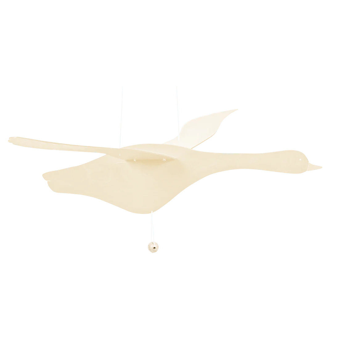 Ein Hingucker fürs Kinderzimmer. Zieht man leicht an der Schnur, bewegt der grosse Vogel ruhig seine Flügel, als ob er fliegen würde.