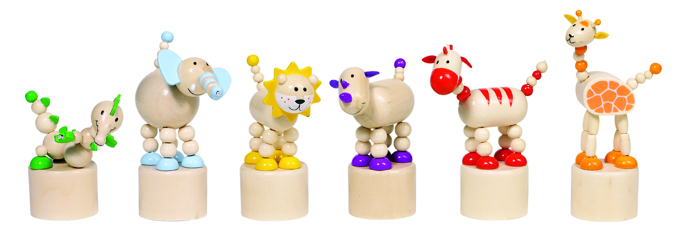 Lustige Figuren und Tiere, die durch drücken der Feder ihre Körperhaltung verändern. 6fach sortiert, 12er Display