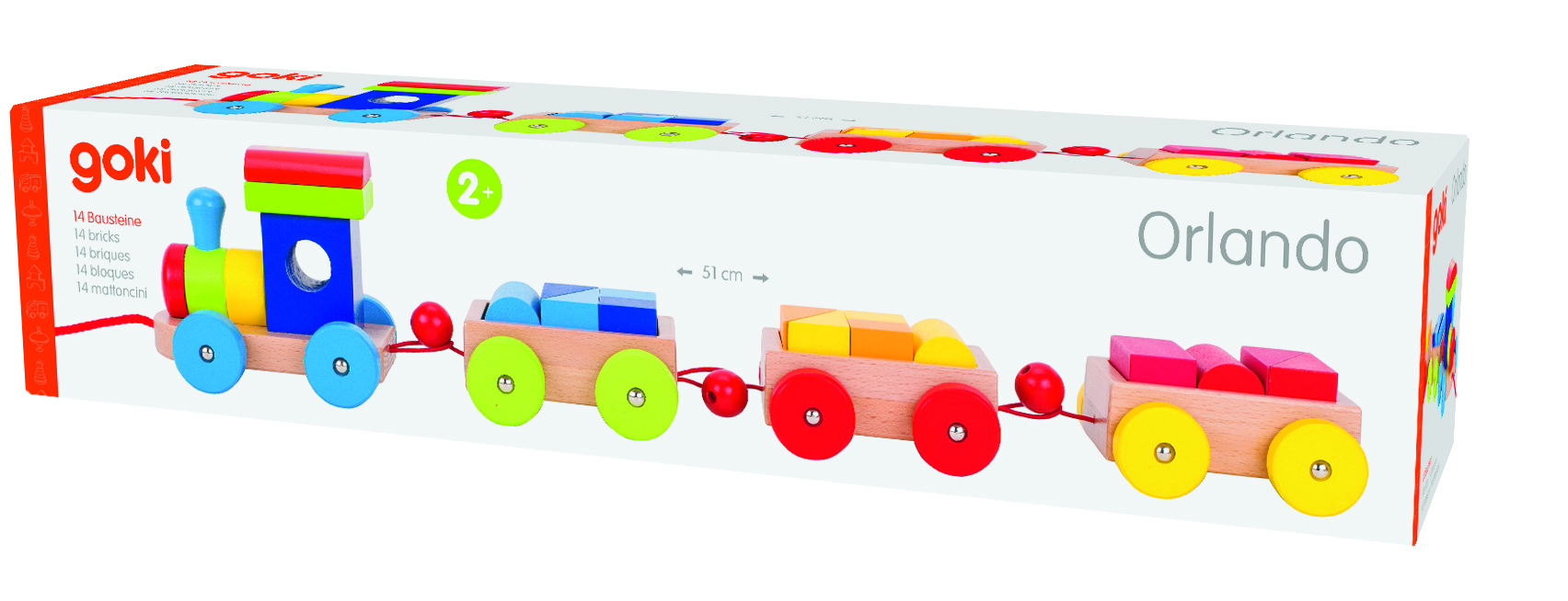 Sobald die bunten Bausteine sicher verladen sind, startet der fröhliche Zug Orlando seine Reise durchs Kinderzimmer. Ob als Ziehspielzeug oder Stapelzug – er verbindet Bewegung mit kreativem Spielspaß und fördert dabei ganz nebenbei Motorik und Fantasie. Auf geht’s – der Zug wartet schon!
